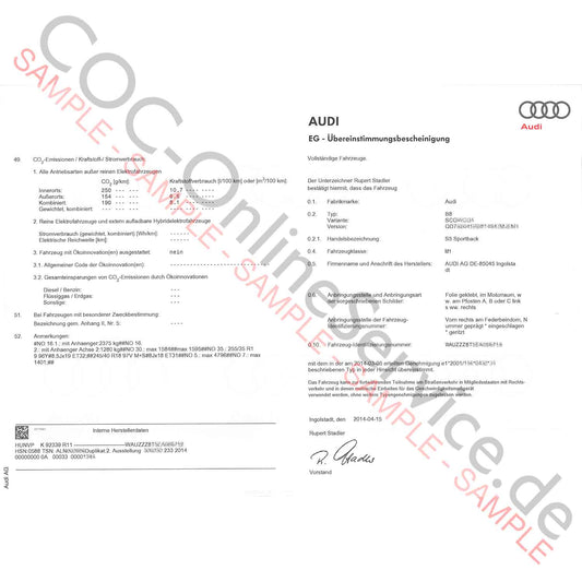 Έγγραφα COC για Audi (Πιστοποιητικό συμμόρφωσης)
