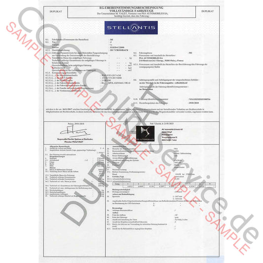 Έγγραφα COC για αυτοκίνητα DS (πιστοποιητικό συμμόρφωσης)