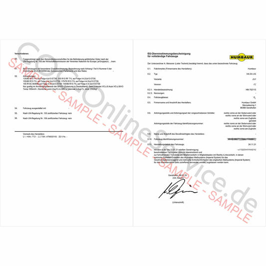 COC για την ρυμουλκούμενα οχημάτων από Humbaur