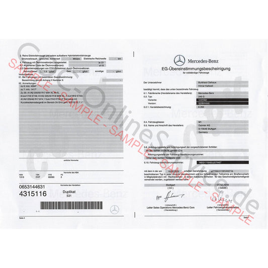 Έγγραφα COC για Mercedes-Benz (Πιστοποιητικό συμμόρφωσης)