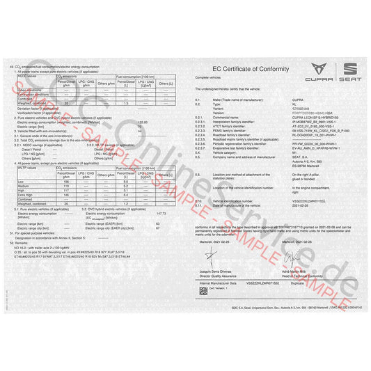 Έγγραφα COC για SEAT (Πιστοποιητικό συμμόρφωσης)