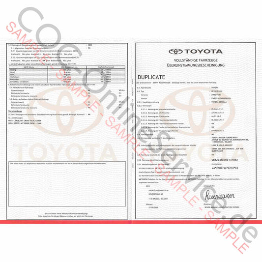 Έγγραφα COC για την Toyota (Πιστοποιητικό Συμμόρφωσης)