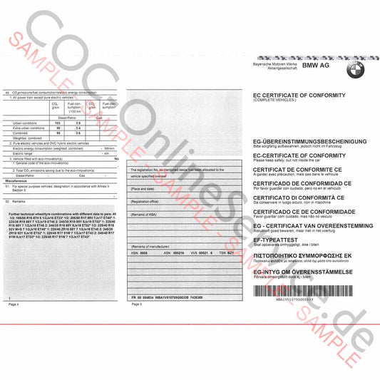 Document COC pour BMW (certificat de conformité)